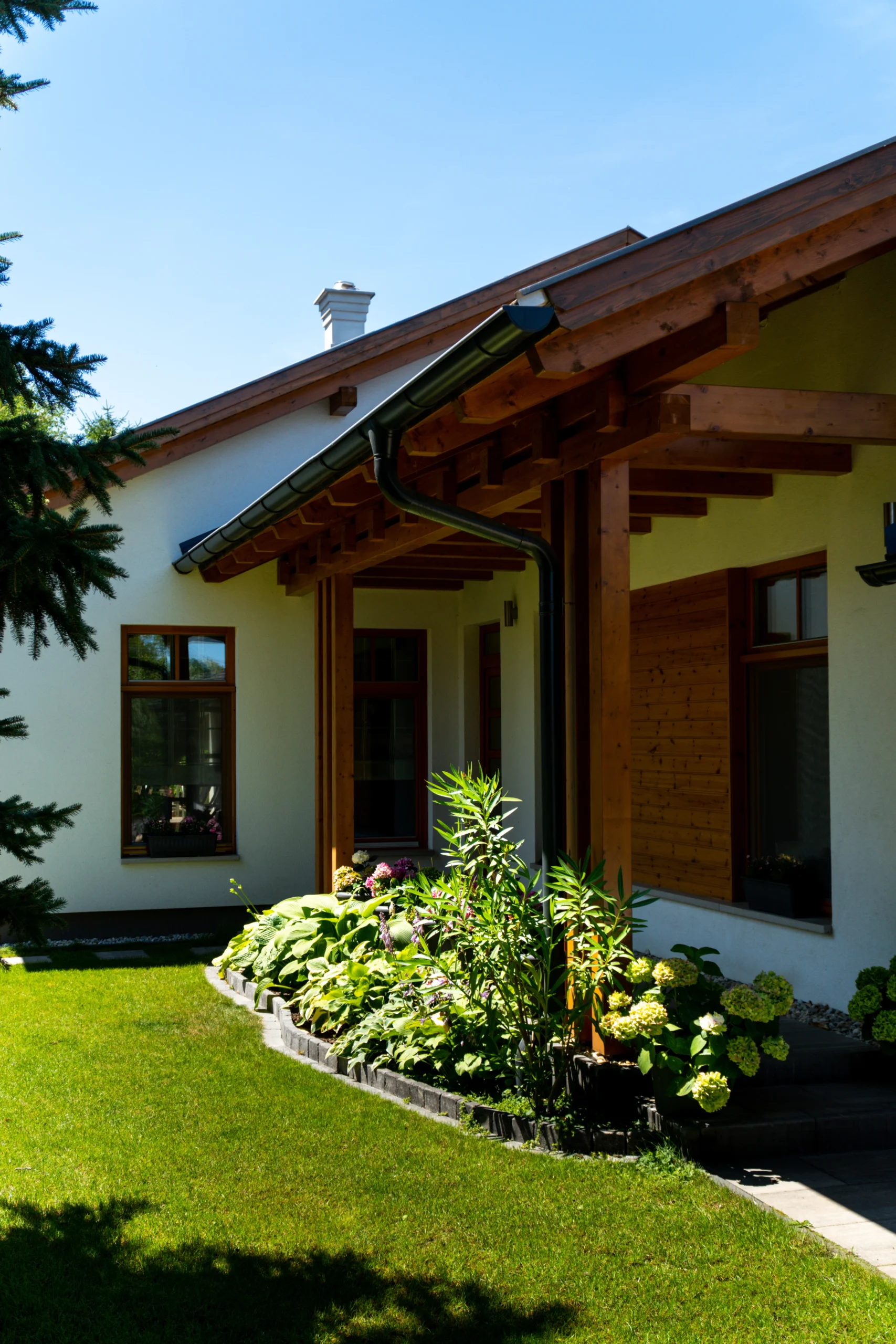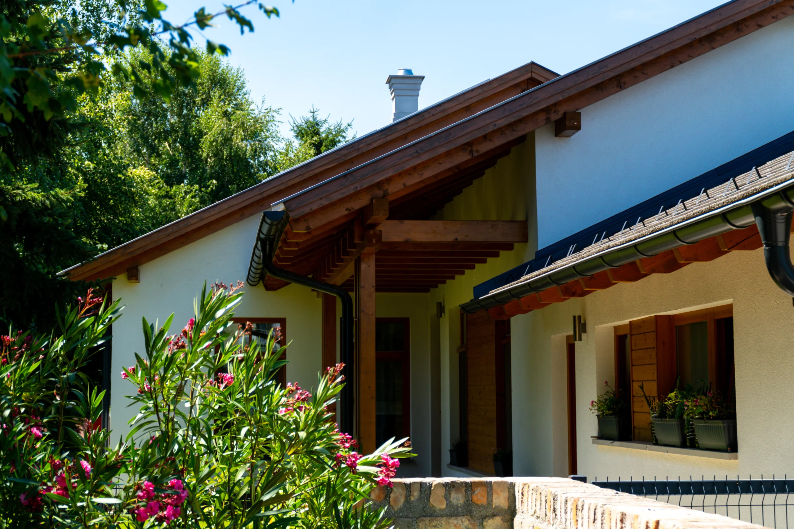 A tervezés során nem csak a közösségi- és privát funkciójú helyiségek elkülönítése volt cél, hanem azon belül a szülői-, illetve gyermek szekciók különválasztása is. Ennek következtében alakult ki két, egymástól távol elhelyezkedő háló-blokk, melyeket egy tágas és világos helyiségcsoport köt össze: a közösségi terek. A belső élettér meghosszabbításaként készült el egy rendkívül különleges úszó-tóba végződő fedett terasz, amely a nap bármely szakaszában kellemes időtöltésnek adhat helyet.
